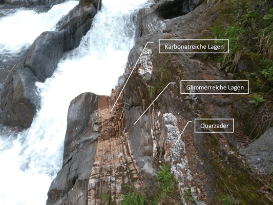 The Groppenstein gorge is the geographical border between the Sonnblick and Reißeck groups. The creek bed of the Mallnitz creek has a smooth polish that results from the Auernig-Törlkopf rockslide and consists of greenstone.